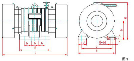 YZU系列振動電機(jī)外形安裝尺寸: